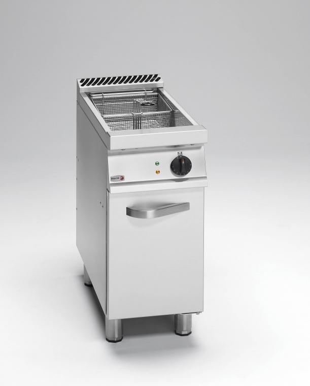 Fagor FG7-05 1C 70'lik Gazlı Fritöz Termostat kontrollü (60 C - 195 C) Elektromanyetik valfi otomatik ateşleme, pilot lamba ve termokup Güvenlik termostatı Drenaj musluğu Her hazne için 250 x 280 x 120 mm ebatında 1 büyük sepet Elektrik : 230 V - 1N